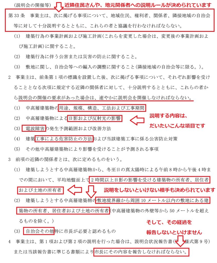 その取り決めのなかに近隣住民さんへの説明をしなさい、というルールがおかれています。