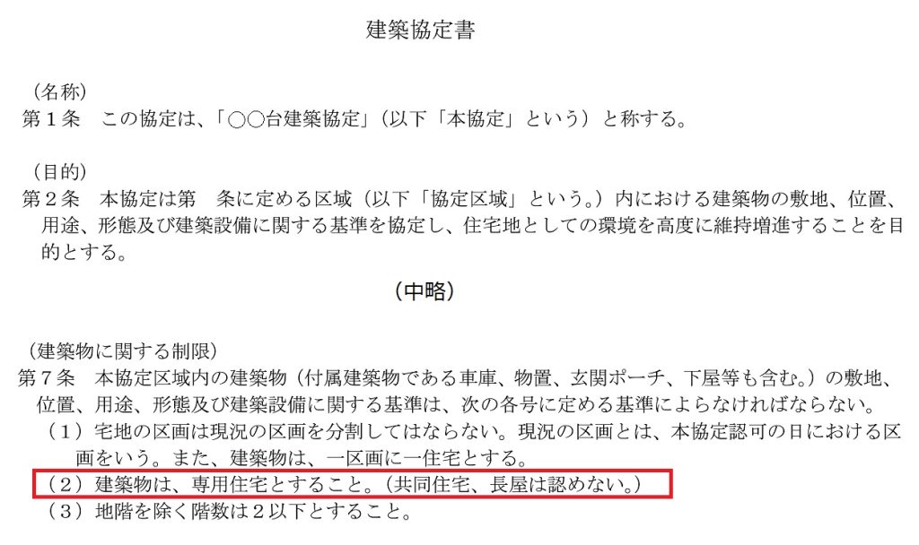 - 購入した土地は、アパート建築不可の建築協定があるかもしれないので注意