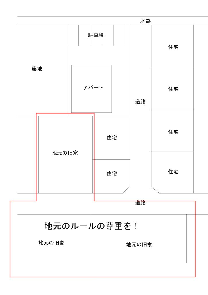アパートの住人さんも昔ながらの地域のルールに従ってほしい、という地元の旧家からの要請です。