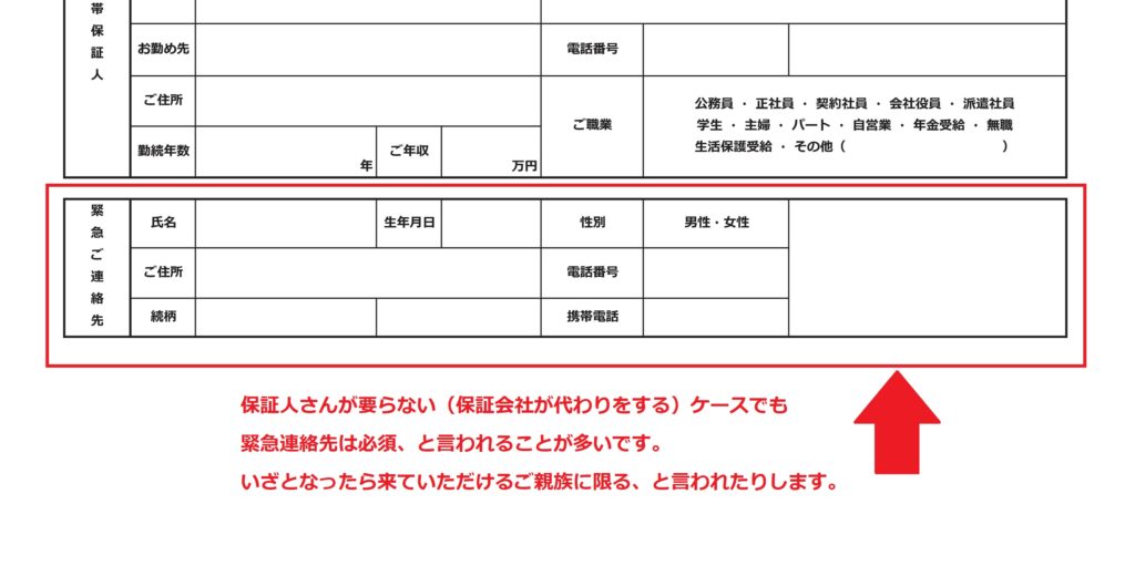 それとは別で、近いご親族の方の緊急連絡先の提出が条件になっていることもあります。