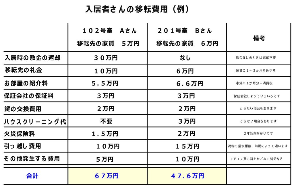 今のお住まいから引っ越しをするとなると、当然のことながら入居者さんにとって出費が発生します。