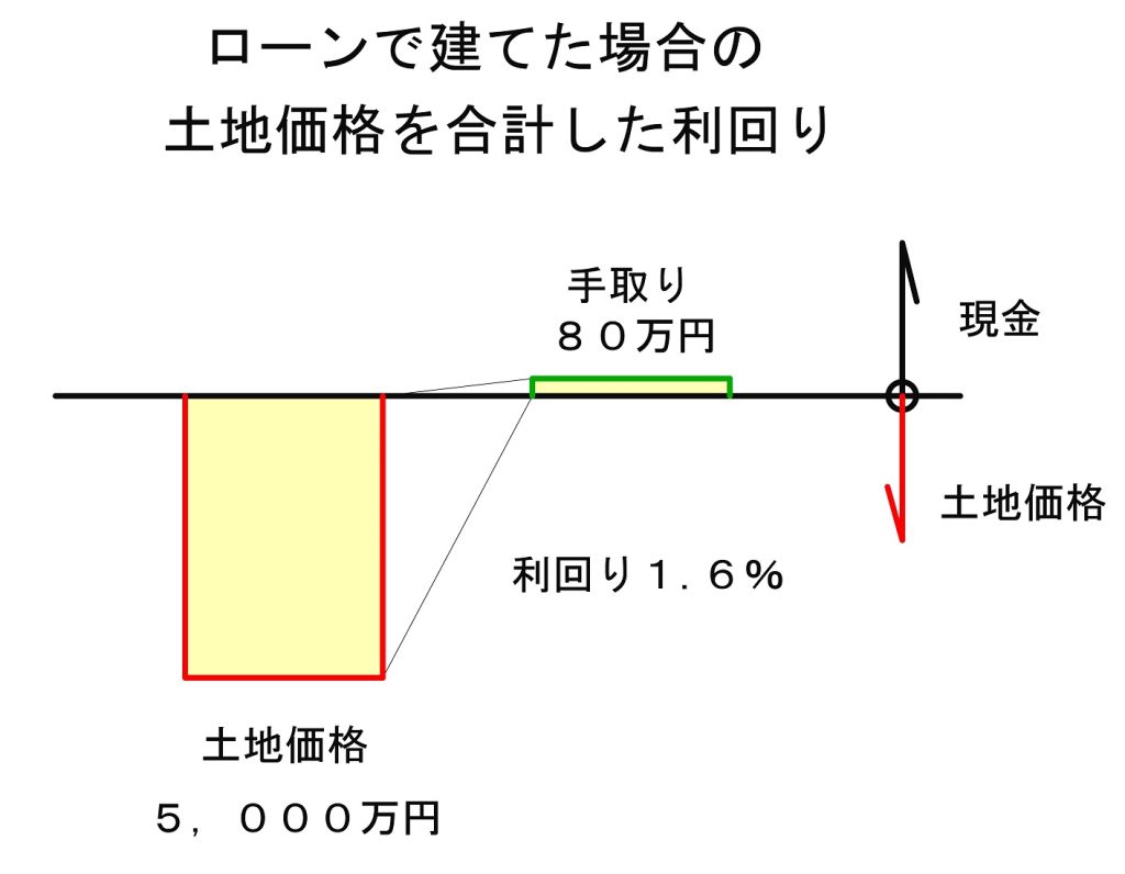 80万円(年間の手取り)÷5,000万円(土地の価値)=1.6%