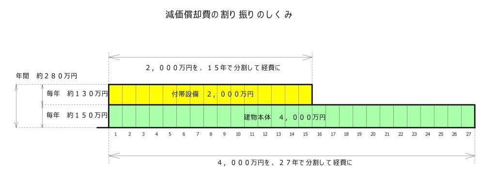 それは減価償却費と呼ばれている、建物の建築費そのものを経費として落としていく方法です。
