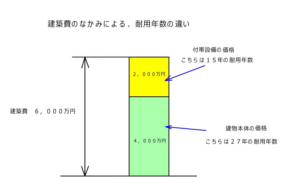 ほかに付帯設備と呼ばれる、建物以外の費用は15年と短かったりします。