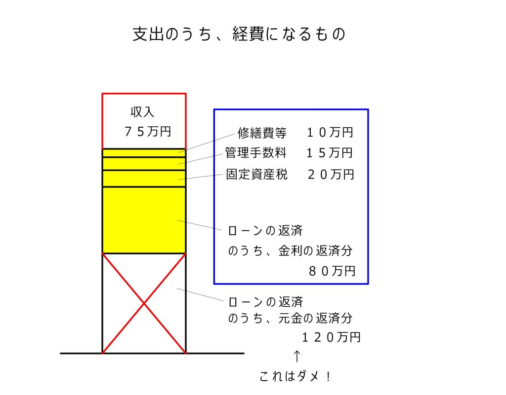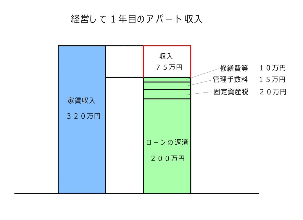 320万円の家賃収入に対して、経費は245万となりますから、