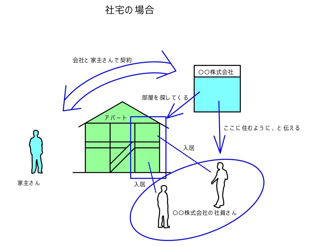 「会社が借りてくれるなら、安心」とか、「社宅だと、ふつうのアパートと違ってずっと借りてくれるから心強い」とか、良いイメージのお返事が返ってくることが多いです。