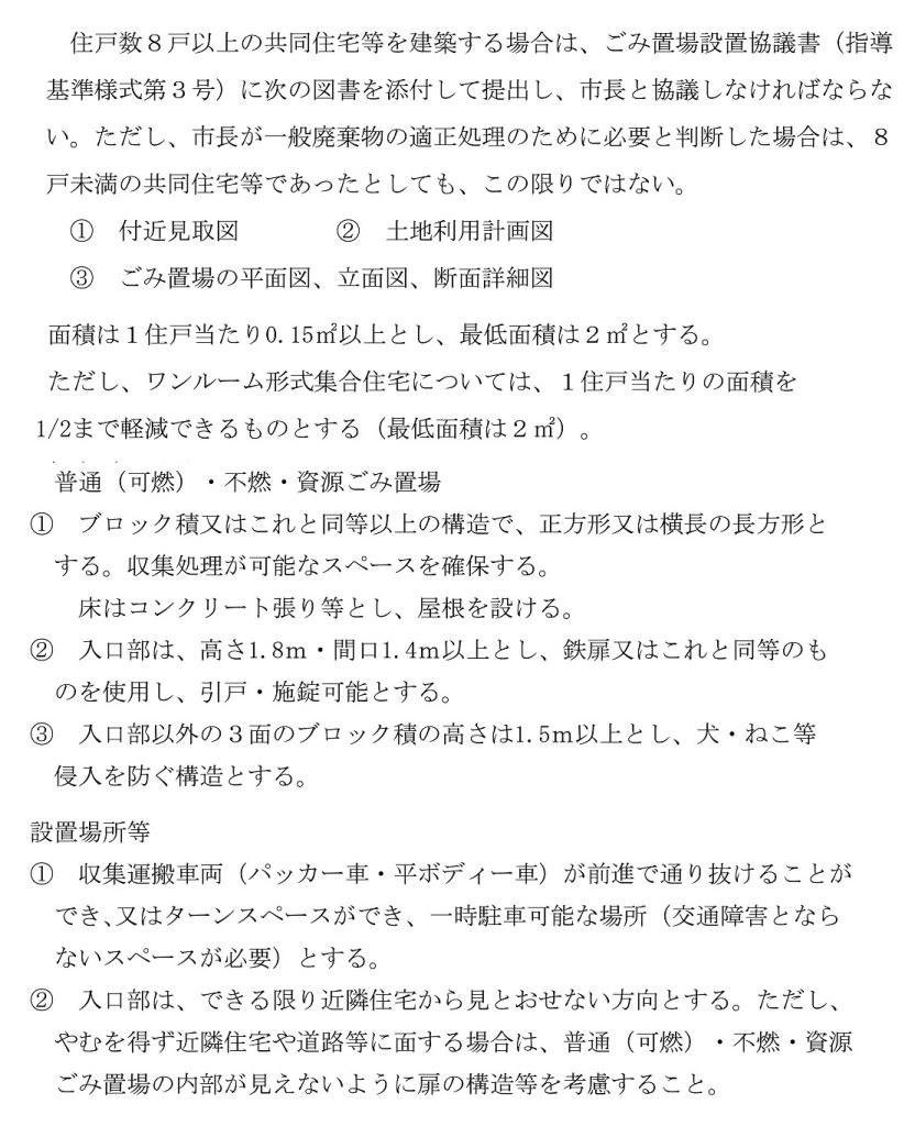 そのなかに、ゴミ置き場の設置の規定が書かれていることが多いです。