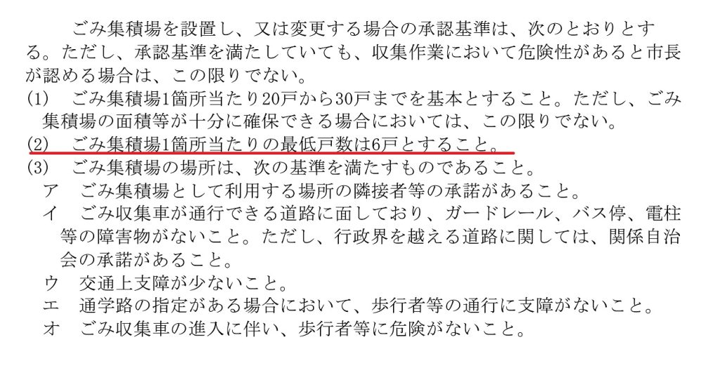 たとえば、この自治体では6戸以上のアパートしかゴミ置き場の新設を認めていません。