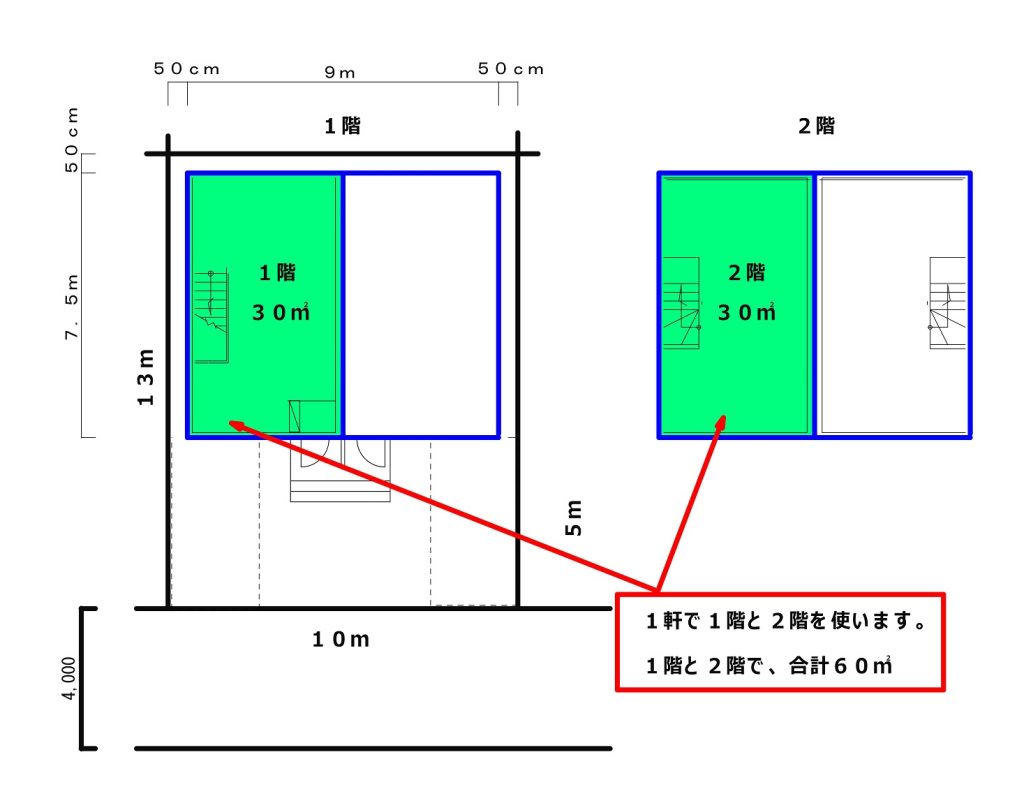 それでも、それぞれ1階で30㎡(1.2階合計だと60㎡)の広さになりますので