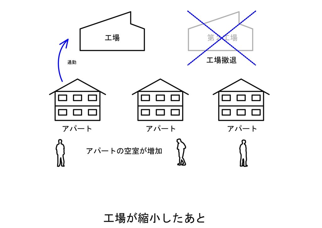 工場でたくさん働いている方々がいなくなり、別の工場に転勤になっていくことだってあるのです。